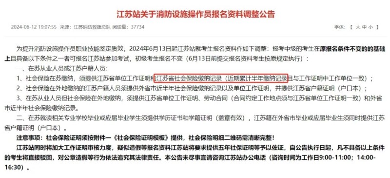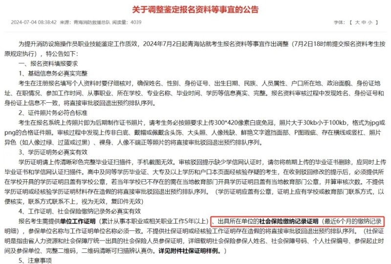 2024年5月,山東、陜西、云南、河南,甘肅5省均要求新增6個月社保證明。同時,河北站發(fā)布關于調整報名資料審核公告,新增報名資料真實性現(xiàn)場抽查環(huán)節(jié)。