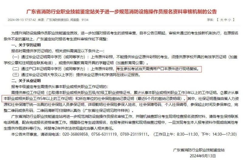 2024年9月13日,廣東站新增6個月社保證明,并且用戶口本做學歷證明的考生需攜帶戶口本原件進行現(xiàn)場復核。