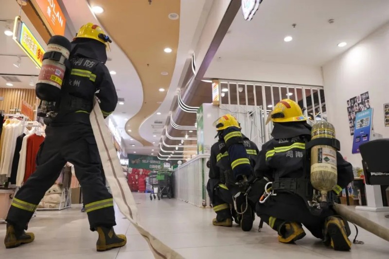 12月4日,一場消防應急演練在永州市道縣步步高新天地購物廣場有序展開。