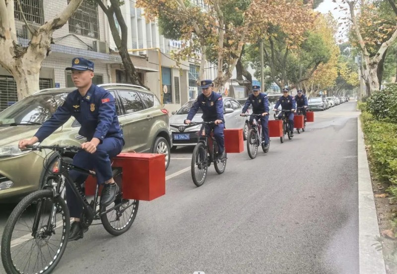 “一提,二拔,三握,四壓!”在長沙市望城區,望城消防救援站成立的騎行小分隊,騎行小分隊由6人組成,配置了器材放置箱,箱內配備戰斗服、滅火器、防毒面具及宣傳手冊等,深入轄區門店開展消防安全隱患排查和消防安全知識宣傳。